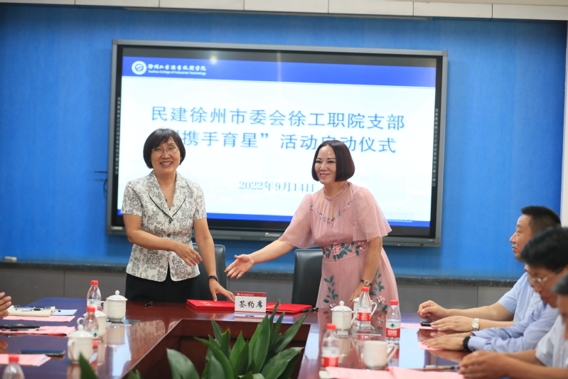 9月14日上午,民建徐州市委会徐工职院支部“携手育星”活动启动仪式在学校行政楼三楼会议室隆重举行,民建江苏省委副主委、徐州市人民政府副市长、民建徐州市委会主委林斌,学校党委书记祝木伟,党委副书记、院长刘莹,党委副书记李红,民建徐州市委会专职副主委王奉君,民建徐州市委会副主委、徐州市发改委副主任孙统贤,民建徐州市委会社会服务委员会主任、江苏大岛音响电器工程有限公司董事长张静,民建徐州市委会徐工职院支部主委张敬斋,学校统战部、宣传部、党政办、学工部等相关部门负责人,部分会员和学生代表参加了活动,活动由孙统贤主持。